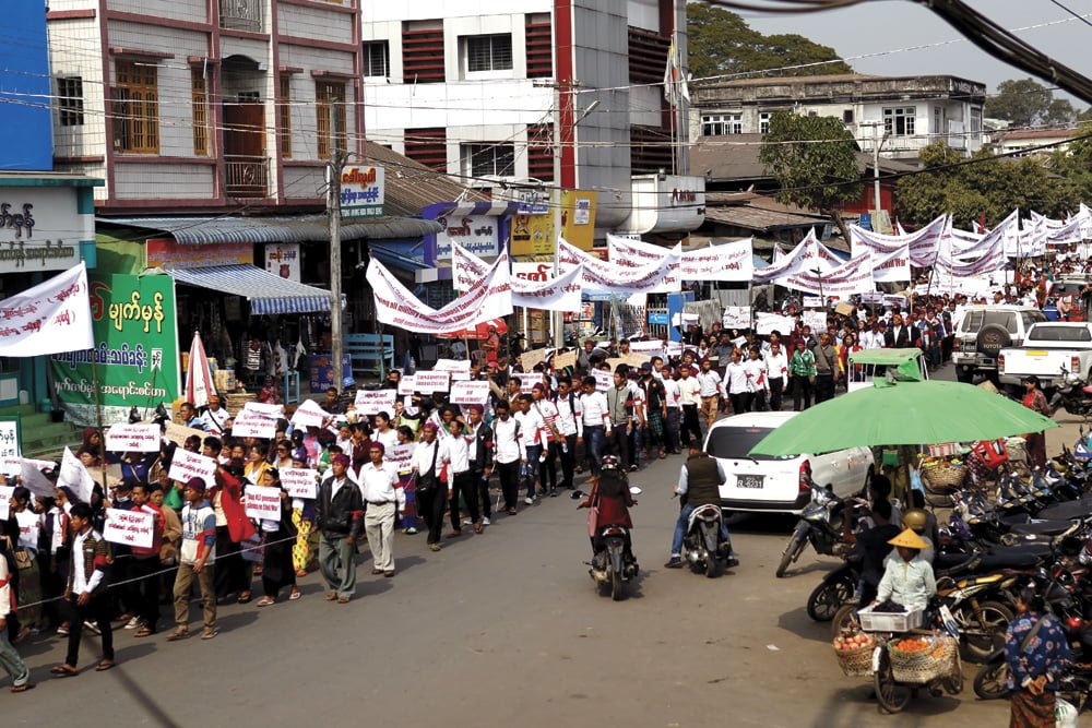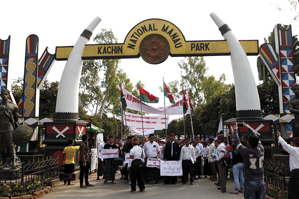 တုိက္ပြဲမ်ားေၾကာင့္ ပိတ္မိေနသည့္ စစ္ေဘးသင့္ျပည္သူမ်ားအား ကယ္ထုတ္ႏုိင္ေရးအတြက္ ေဖေဖာ္၀ါရီလ ၅ ရက္ေန႔တြင္ ကခ်င္ေဒသခံ ၅၀၀၀ေက်ာ္ ဆႏၵထုတ္ေဖာ္ခဲ့ၾကသည္။