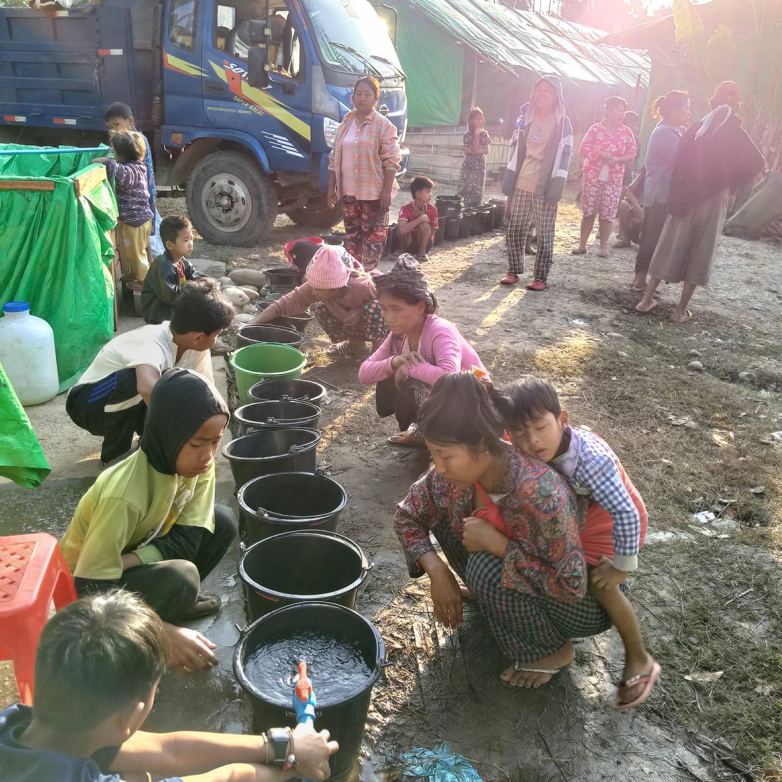 သောက်သုံးရေကို အရင်စခန်းတစ်ခုလုံးတွက် တစ်ရက်ဗူး ၂၀ ( ၂၀ လီတာဗူးကြီး) သာရရှိတဲ့အတွက် လုံလောက်မှုမရှိဘဲ မနေ့ ဧပြီလ ၃ ရက်နေ့မှာ ရေသန့်ဗူး ၁၀၀ လာရောက်ကူညီပေးတဲ့အတွက် ဒီရက်ပိုင်းအဆင်ပြေပြီလို့လည်း သိရပါတယ်။
