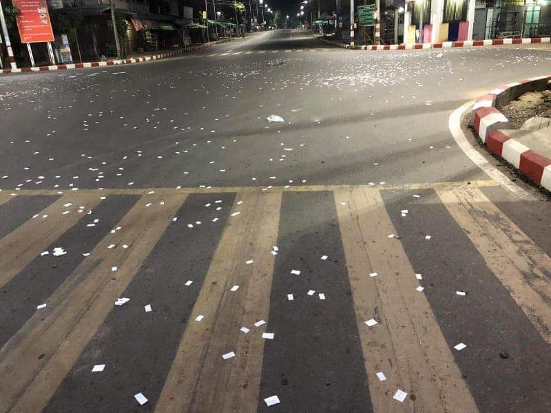 “အာဏာရှင်လက်ပါးစေ သစ္စာဖောက်လောက်ကောင်ဦးထွန်းထွန်းအလိုမရှိ” စသည့် စာရွက်များကိုလည်း မြို့အနှံ့ကျဲထားကြောင်း သိရသည်။