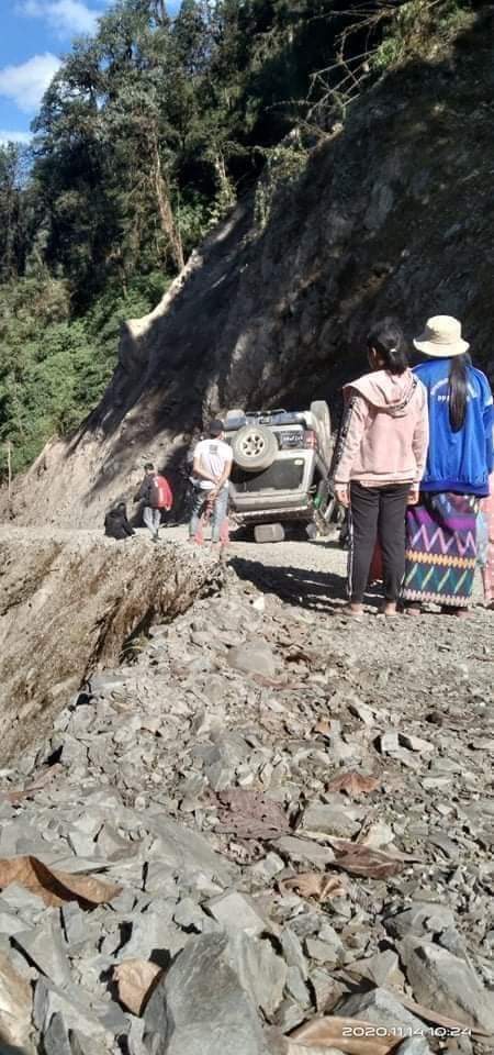 သို့ရာတွင် ကားမောင်းသူမှ အပေါ်ဘက်ကမ်းပါးယံကိုတိုက်ပြီး ကားလမ်းပေါ်တွင်သာပက်လက်လဲကျလိုက်ခြင်း ကြောင့် ကားပေါ်တွင်ပါလာသူများ ၊ကြီးကြီးမားမား ထိခိုက်ဒဏ်ရာရရှိမှု မရှိခဲ့ကြောင်းသိရသည်။
