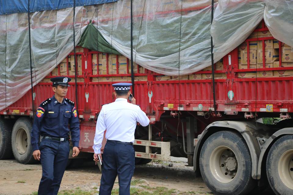 ဝိုင်းမော်မြို့နယ်၊ လော်ဝေါ်ရိုးရာယဉ်ကျေးမှုဗိမာန် ဝင်းရှေ့တွင် စက်တင်ဘာလ ၂၄ ရက် မနက်ကကုန်တင်ကားကြီးများကို ဌာနဆိုင်ရာများပူးပေါင်းထားသည့်အဖွဲ့က တားဆီးစစ်ဆေး ပညာပေးခြင်းများပြုလုပ်ခဲ့သည်။