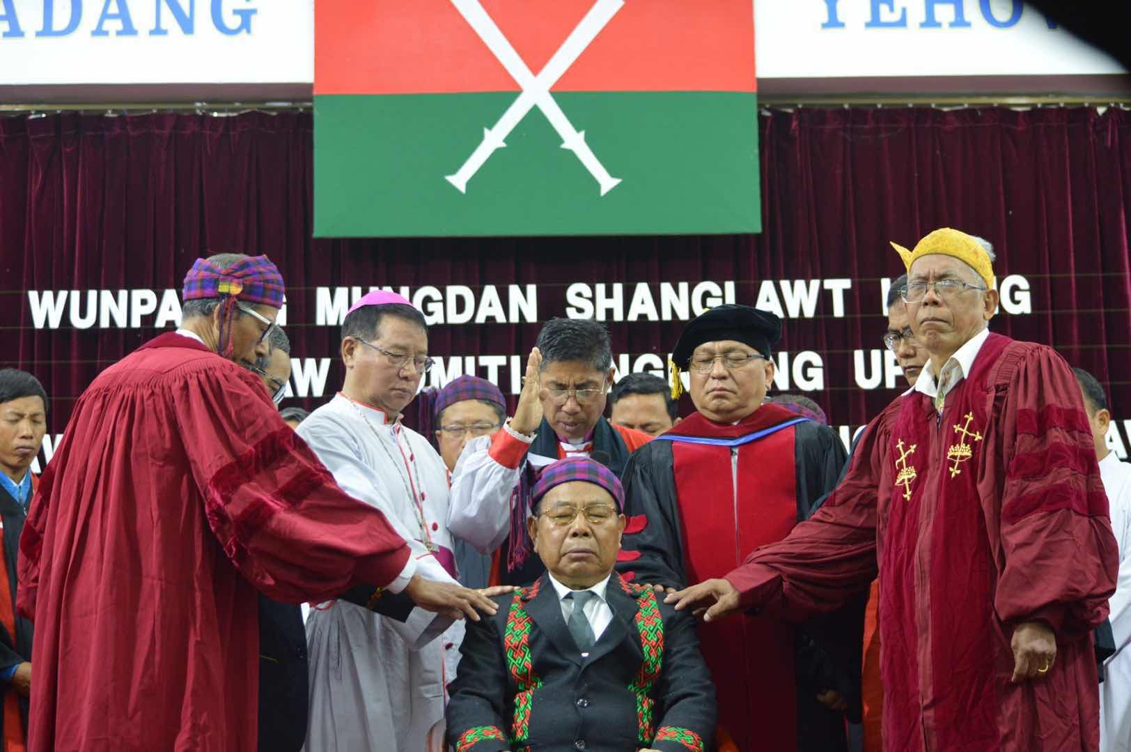 ထိုက်မ္းသစၥာဆိုပြဲတြင္ ဗိုလ္ခ်ဳပ္ႀကီးအင္ဘန္လက ကခ်င္အမ်ိဳးသားအလံႏွင့္ သမၼာက်မ္းစာေပၚတြင္ လက္တင္၍ သစၥာဆိုခဲ့ၿပီး ဂိုဏ္းေပါင္းစံုမွ ဘာသာေရးအႀကီးအကဲမ်ားက ဆုေတာင္းမႈျပဳေပးခဲ့သည္ဟု ေကအိုင္ေအသတင္းႏွင့္ ျပန္ၾကားေရးဌာနမွ ဗိုလ္မွဴးႀကီးေနာ္ဘူက ျမစ္ႀကီးနားသတင္းဂ်ာနယ္သို႔ ေျပာသည္။