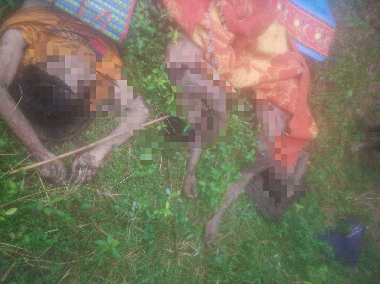 ဓါတ်ပုံ- စစ်ကောင်စီမှ အင်းဒရန့်ကျေးရွာနဲ့ ပုလွေရွှေကျေးရွာ ဒေသခံများအား သတ်ဖြတ်ထားစဉ်။