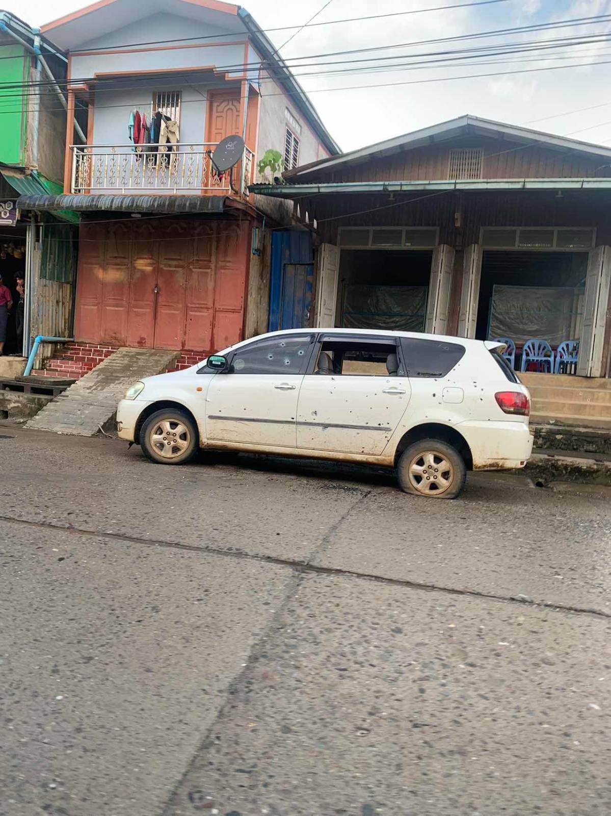 ဆိုင်းတောင်ရပ်ကွက်(၂)က မုန့်တိုက်ဆိုင်ရှေ့မှာ IPSUM အမျိုးအစား ကားအဖြူတစ်စီးကို အမည်မသိလက်နက်ကိုင်အဖွဲ့ကနေ ပစ်ခတ်ခဲ့တာလို့ နောက်ထပ် ဖားကန့်ဒေသခံတစ်ဦးကလည်း ပြောပါတယ်။