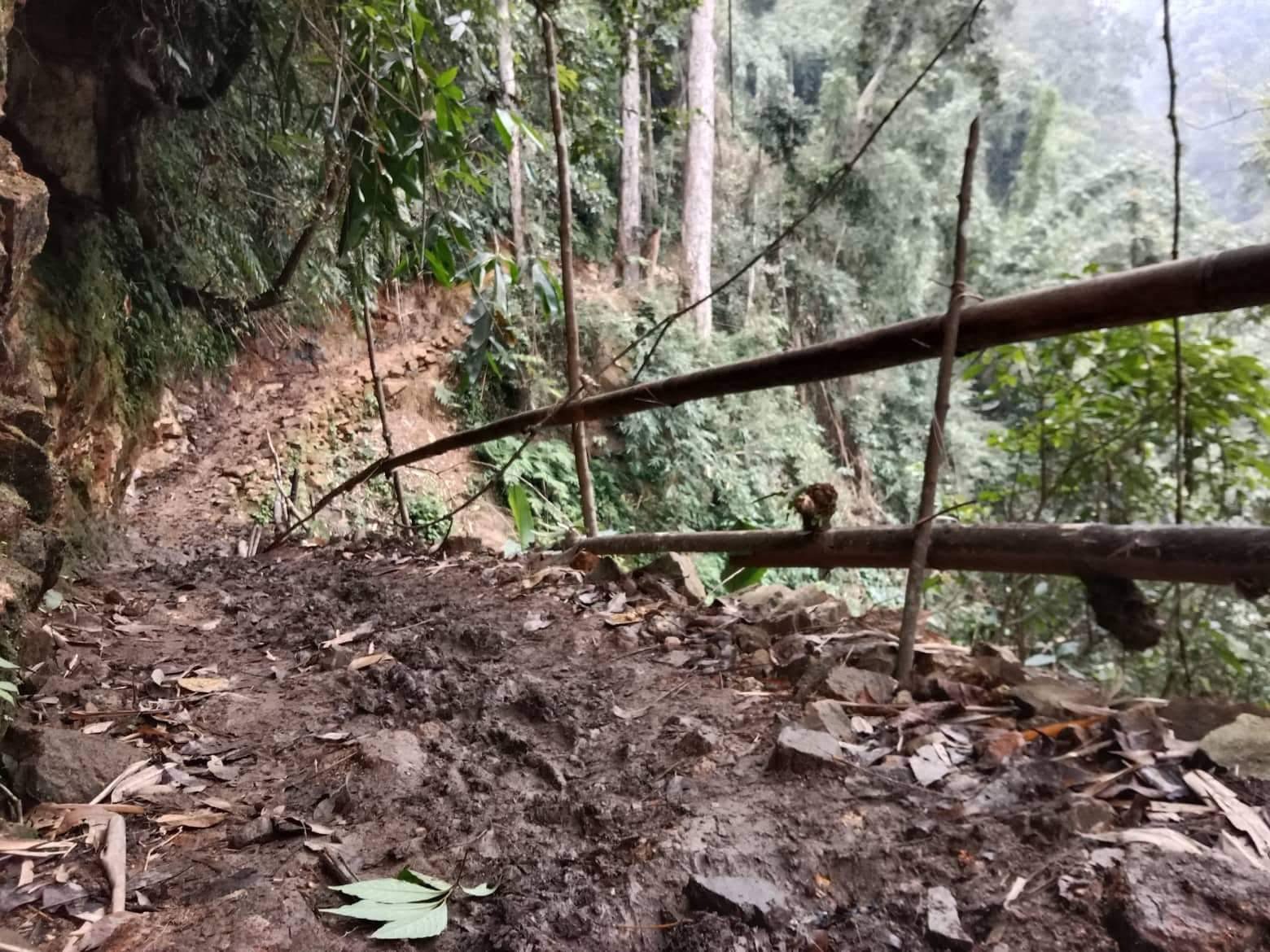 ” (၁၀)ရက်ကျော်လောက်တော့ ရှိပြီ။ လမ်းက ကျောက်ချောလမ်းပဲ ရှိသေးတယ်။ ကမ်းပါးပြိုတော့ အဲဒီလို ဖြစ်သွားတာ။ ဆိုင်ကယ်တွေလည်း ထမ်း၊ တွန်းပြီး ဖြတ်ရတယ်။ အခုက တော်တော် ခက်သွားတာပေါ့။ ခေါင်လန်ဖူးသွားလမ်းမှာ ဟုတ်တယ်”ဟု ၎င်းက ဆိုသည်။
